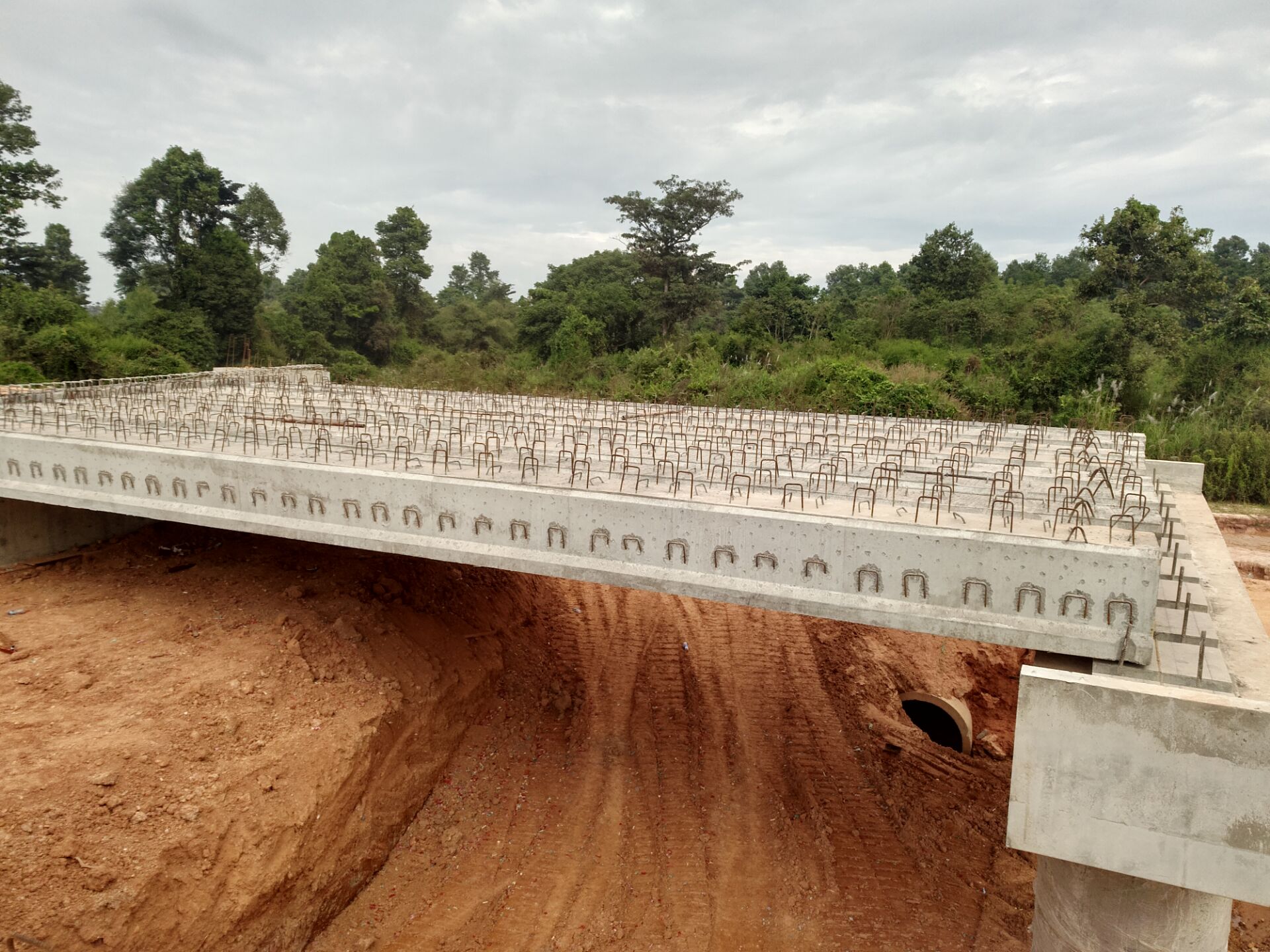 老撾萬萬高速公路土建第二工區(qū)項目部第一片空心板梁吊裝完成