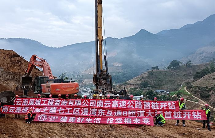 南云高速公路土建七工區(qū)漫灣東互通B匝道大橋首樁開(kāi)鉆