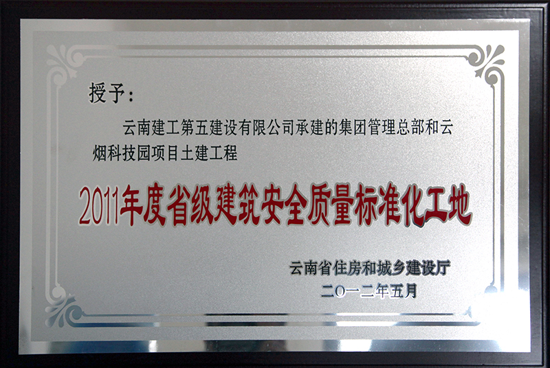 五〇一直管部承建施工的云煙科技園項(xiàng)目土建工程獲“2011年度省級(jí)建筑安全質(zhì)量標(biāo)準(zhǔn)化工地”稱號(hào)