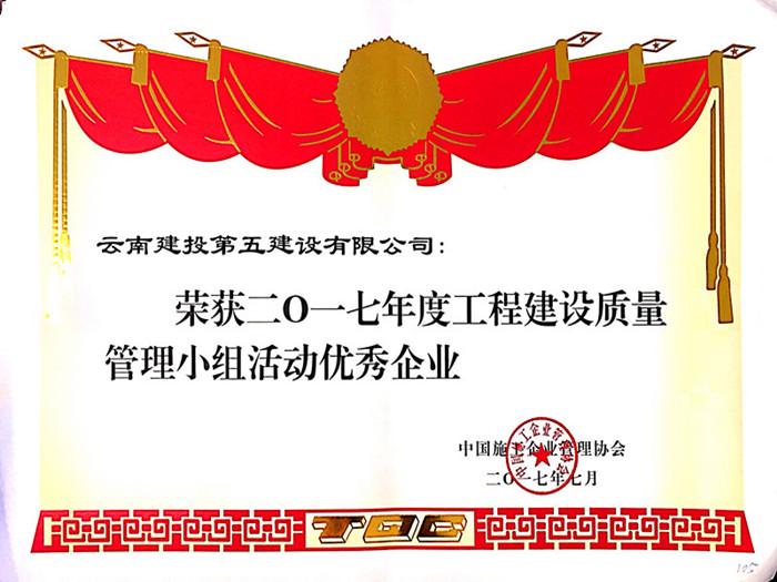 公司榮獲2017年度全國(guó)工程建設(shè)QC小組活動(dòng)優(yōu)秀企業(yè)稱號(hào)
