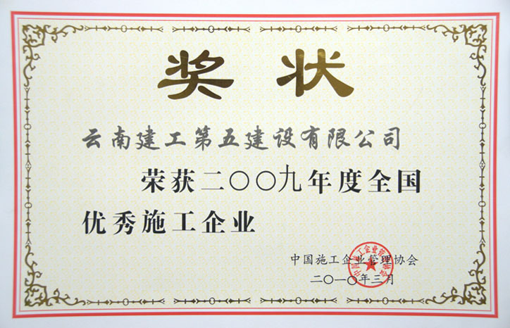 全國優(yōu)秀施工企業(yè) 獎(jiǎng)狀