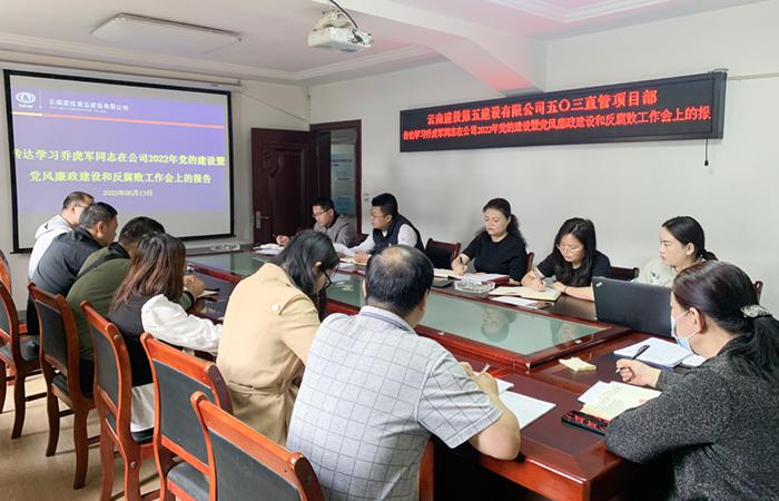 五〇三宣貫學(xué)習(xí)喬虎軍同志在公司2022年黨的建設(shè)暨黨風(fēng)廉政建設(shè)和反腐敗工作會會議精神