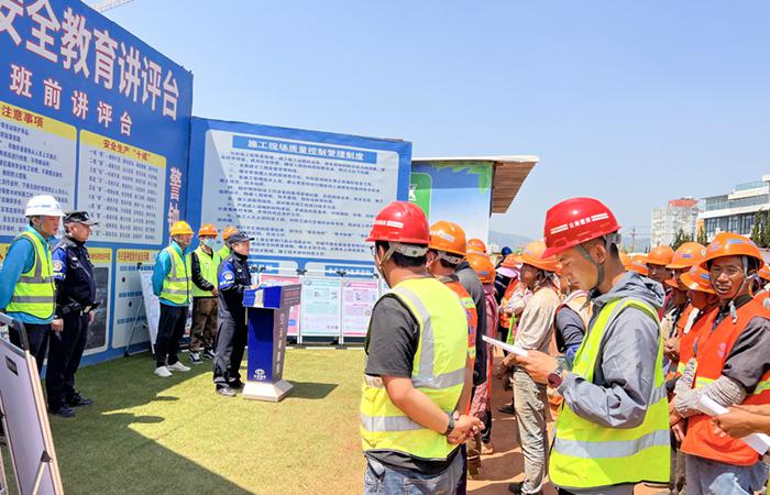 4月11日上午,五華區(qū)金鼎數(shù)字產(chǎn)業(yè)園(一期)項(xiàng)目聯(lián)合虹山派出所、黃土坡社區(qū)開展“普法強(qiáng)基”進(jìn)項(xiàng)目活動,項(xiàng)目部管理人員及所有工人共計(jì)80余人參加?;顒又校缟脚沙鏊L郭強(qiáng)結(jié)合真實(shí)案例,耐心細(xì)致地向工人們講解了防范電信網(wǎng)絡(luò)詐騙、賭博、吸毒、道路交通安全、農(nóng)民工實(shí)名制等方面的法律法規(guī),引導(dǎo)工人提高自身法律意識和安全防范意識,遠(yuǎn)離不法行為和違法犯罪活動。副所長陸永鋒運(yùn)用通俗易懂的語言對電信網(wǎng)絡(luò)詐騙的作案…